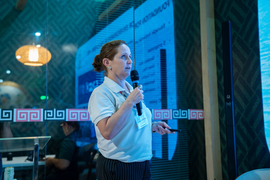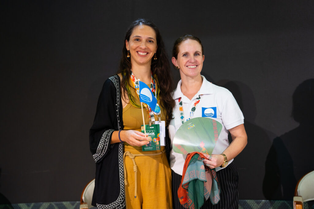 O debate contou com a presença de Marinez Scherer, enviada especial para Oceanos na COP30, que apresentou o panorama global da premiação e relembrou sua trajetória na implementação do programa no Brasil. Em seguida, Leana Bernardi, diretora-presidente do IAR e coordenadora nacional do Bandeira Azul, destacou a evolução, os desafios e os avanços do programa no país, reforçando a importância da gestão qualificada e da educação ambiental para fortalecer praias, marinas e embarcações premiadas.